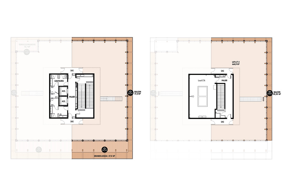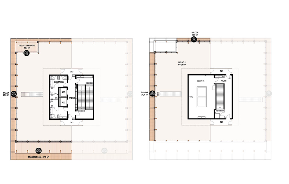 Surface locative R+6 et R+7 yc. prorata PC : 1.316,03 m²